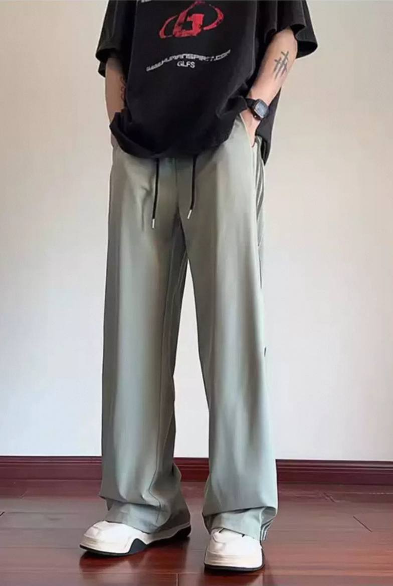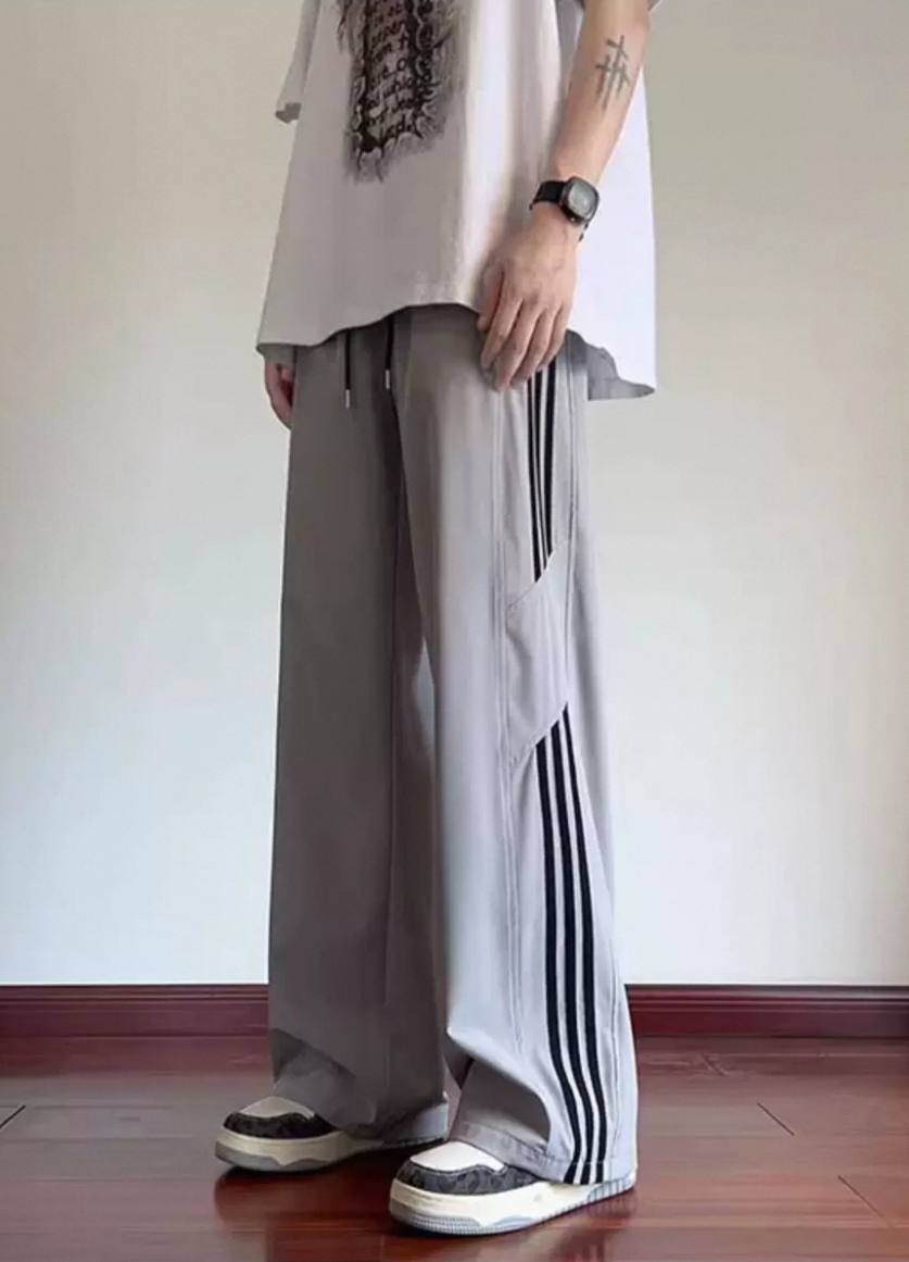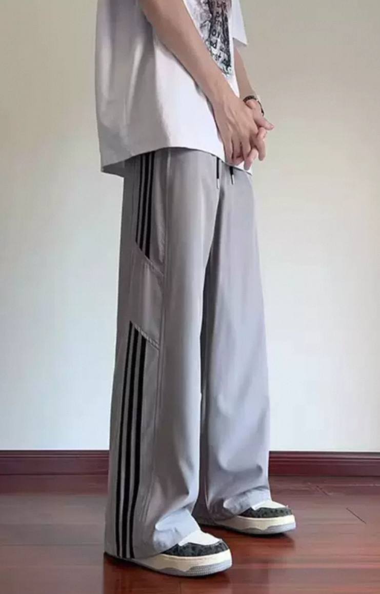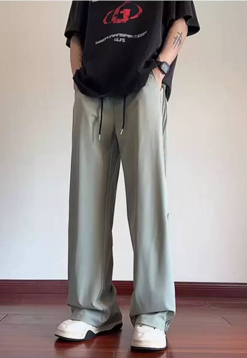 Striped ice silk loose summer pants for men