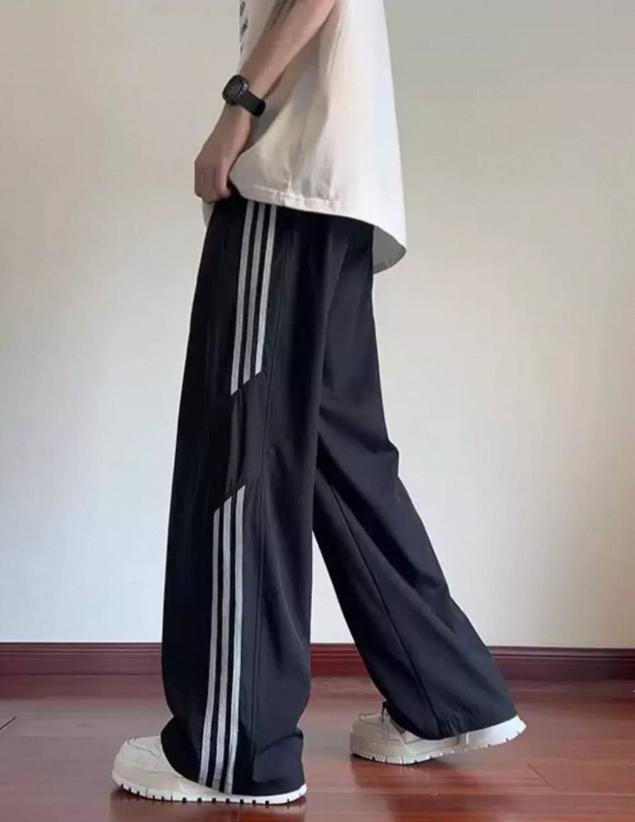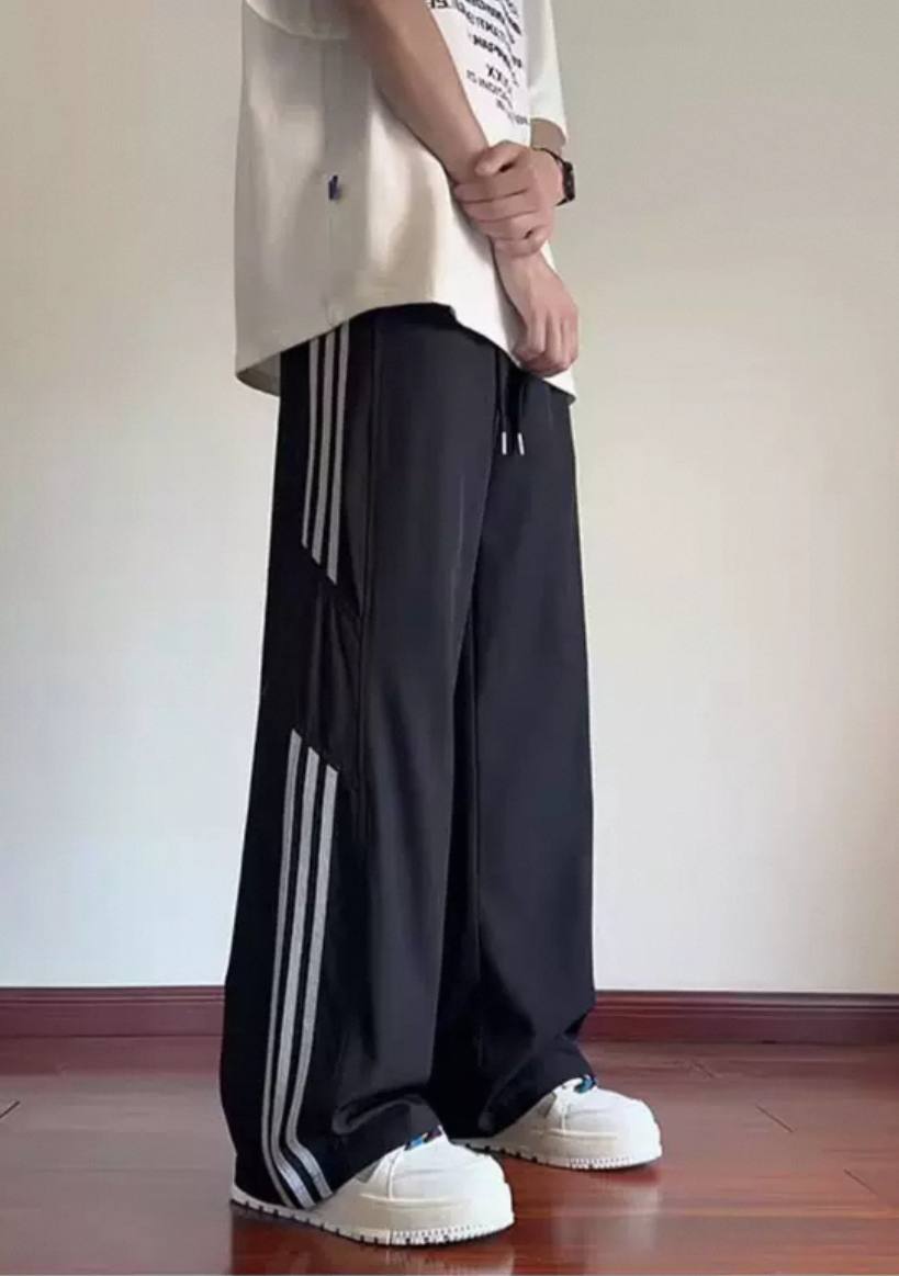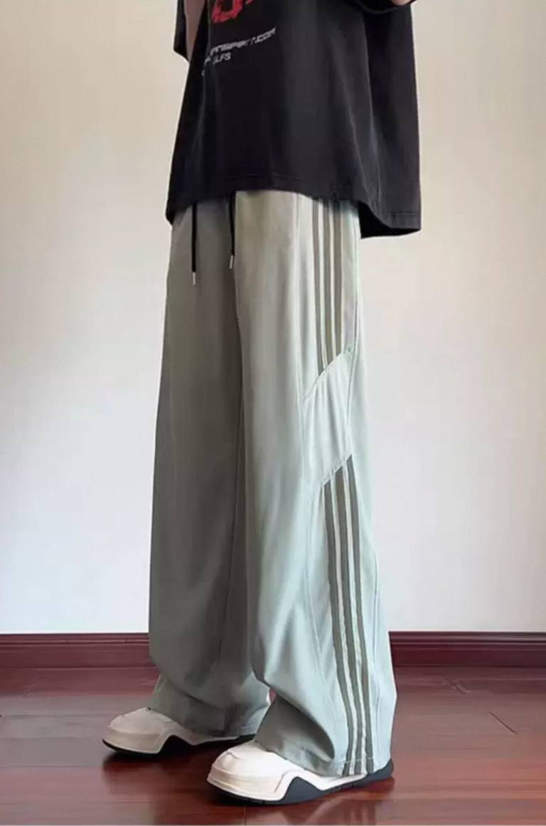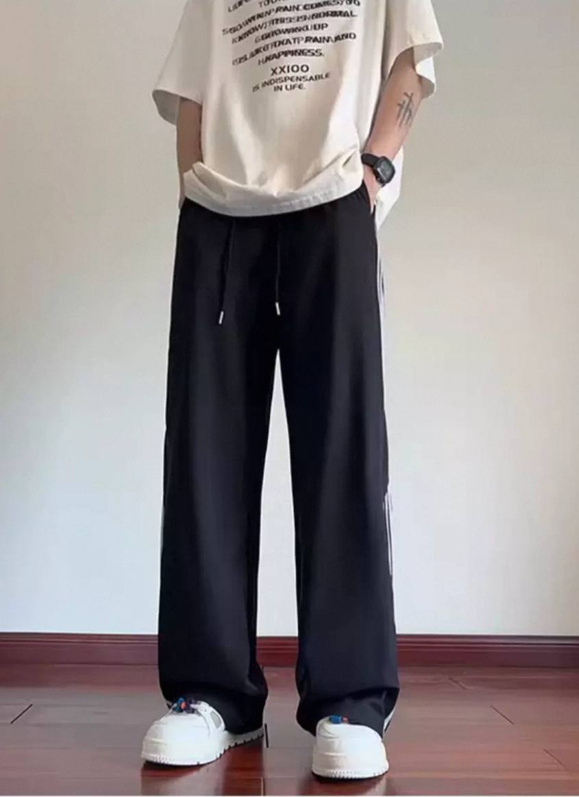 Striped ice silk loose summer pants for men