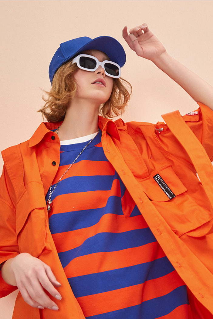 NOCAO new style couple techwear dress women orange back print cartoon casual out