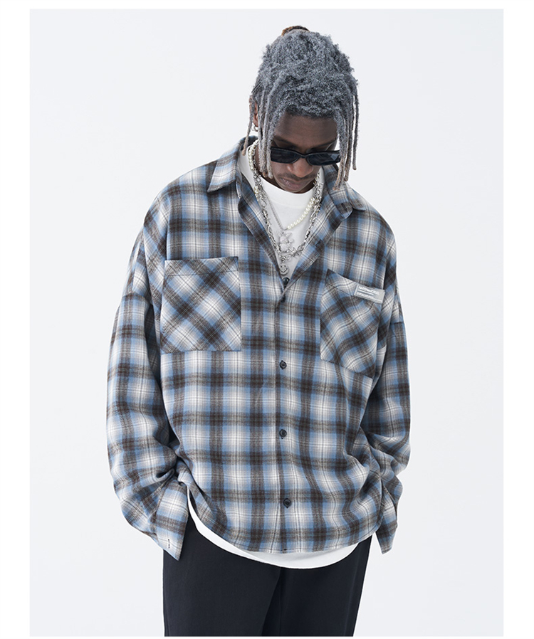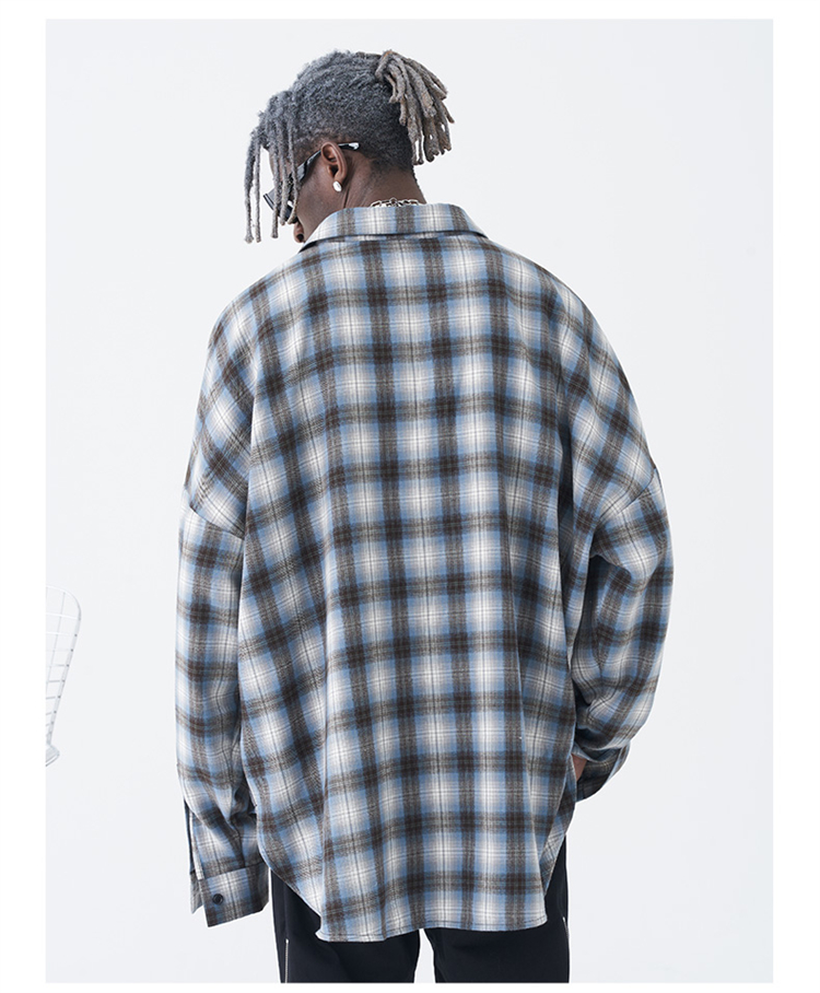 vintage flannel mens trendy pocket spring and autumn plus size loose unisex cott
