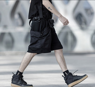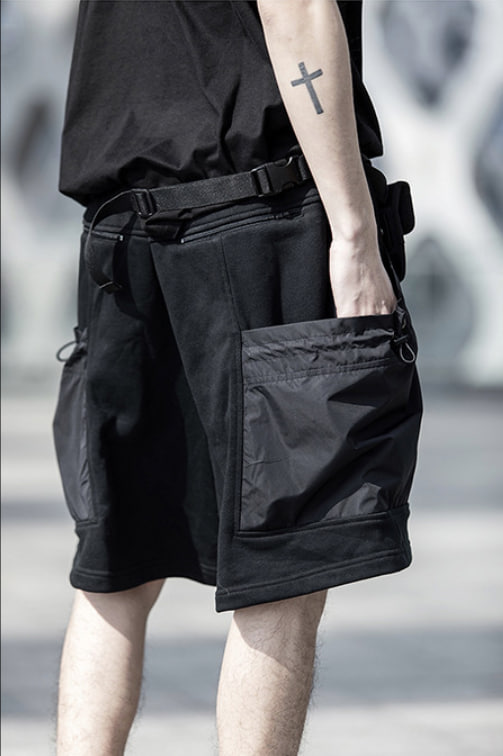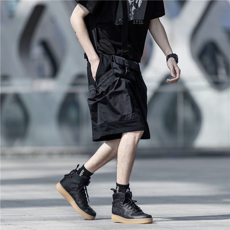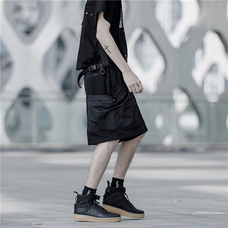 New outdoor multi pockets trendy function male sports middle long stitching zipp