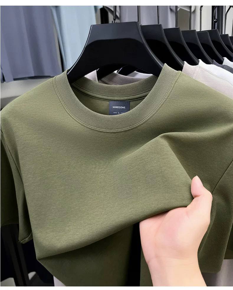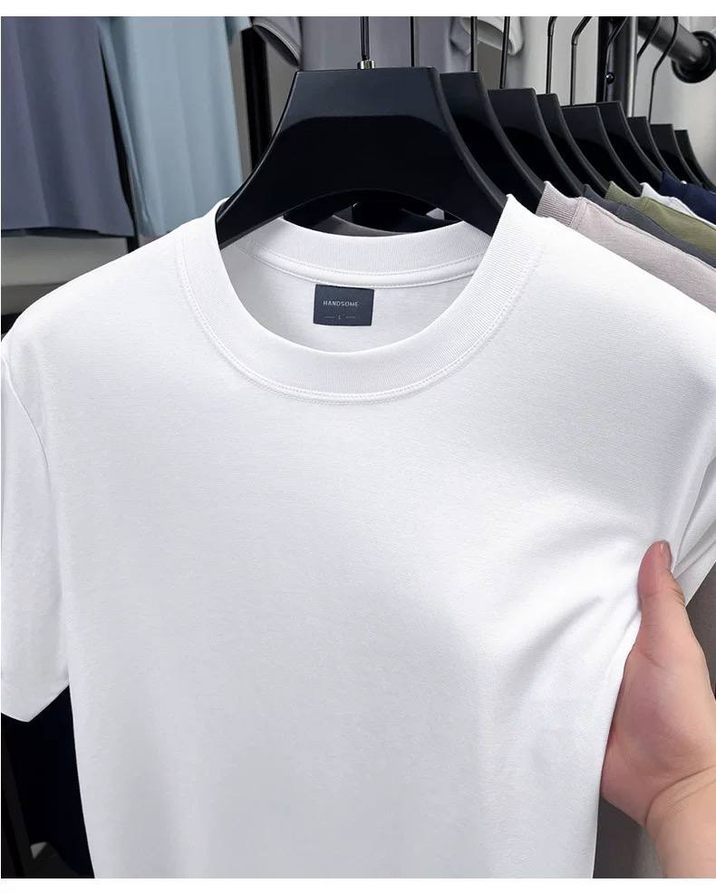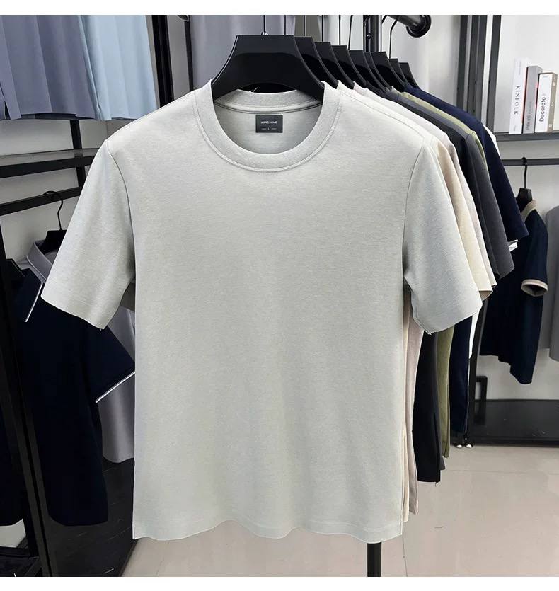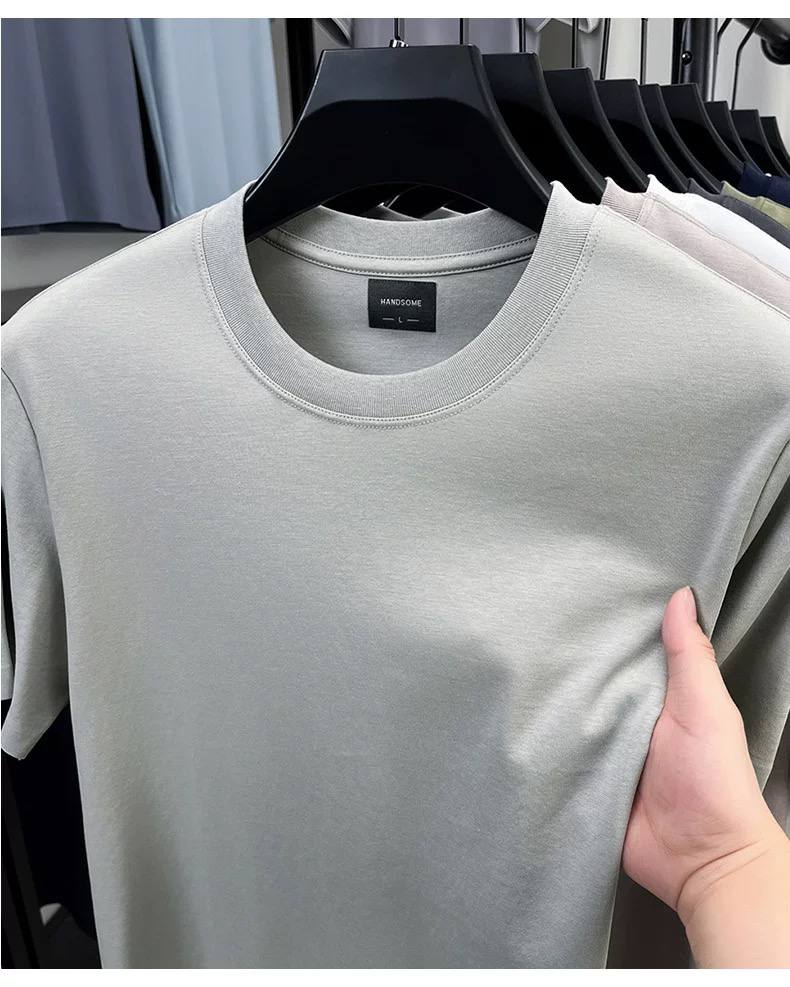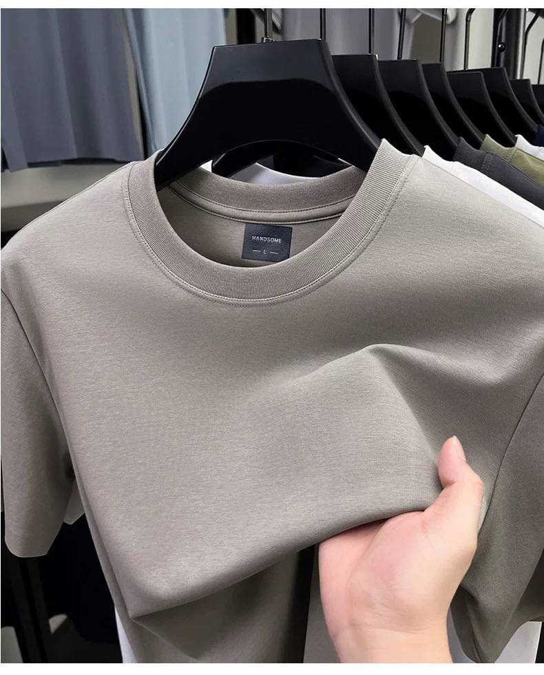 Summer liquid ammonia cotton men's round neck short sleeve T-shirt